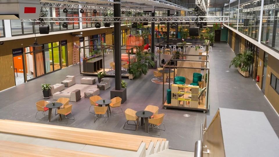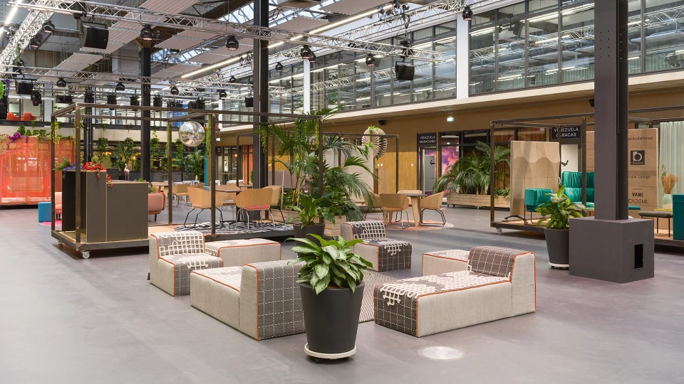 Amazonas- the vibrating heart of our Jungle In the 610 m² central village square, South American flair merges with innovative event culture. The characteristic M-shaped roof with a greenhouse design, mobile and convertible houseboats as well as a technical infrastructure through a truss construction make the Amazonas the perfect venue for large events with up to 600 people. The ground-level delivery zone and six uniquely colorful breakout rooms provide maximum flexibility. Whether you'd like a plenary hall with stage or connect your people at an after-work event, there's plenty of space for genuine interactions.