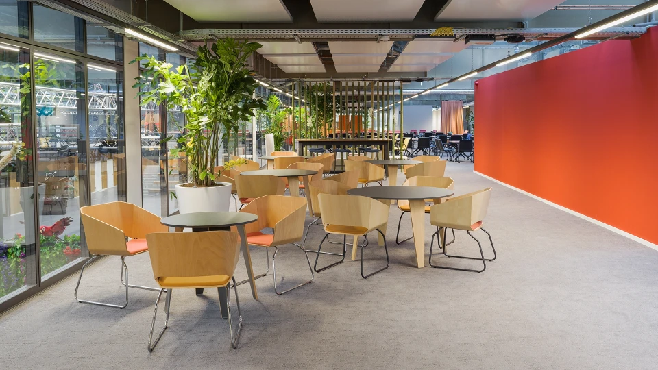 Beach Bar - Deine tropische Auszeit Strategisch neben Costa Rica gelegen, empfängt Dich die Beach Bar mit ihrer einzigartigen Mischung aus Urlaubsflair und modernem Arbeitsambiente. Die markante korallenrote Wand mit künstlerischen Palmenmotiven und die von der Decke hängenden üppigen Grünpflanzen schaffen eine entspannte Atmosphäre für Deine kreativen Meetings und Get-togethers. Mit einer vollausgestatteten Selbstbedienungstheke, flexiblem Mobiliar und gemütlichen Loungebereichen ist sie der ideale Ort für Deine informellen Gespräche oder inspirierenden Kaffeepausen. Die natürlichen Bambuslampen, die großzügigen Fensterfronten und die durchdachte Raumaufteilung mit weißen Arbeitstischen und korallenfarbenen Akzenten machen die Beach Bar zu Deinem perfekten Spot für produktive Auszeiten im Tropical-Style.