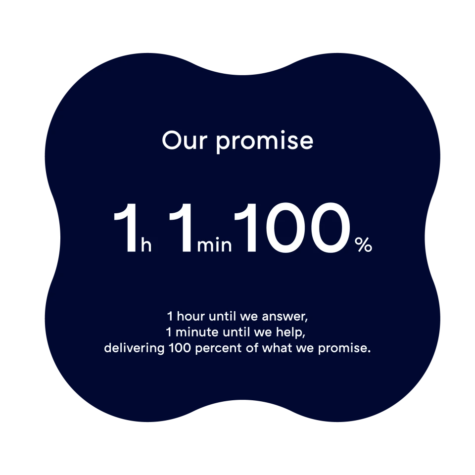 Fast service is one of our principles. You can be sure to hear back from us in under 60 minutes.