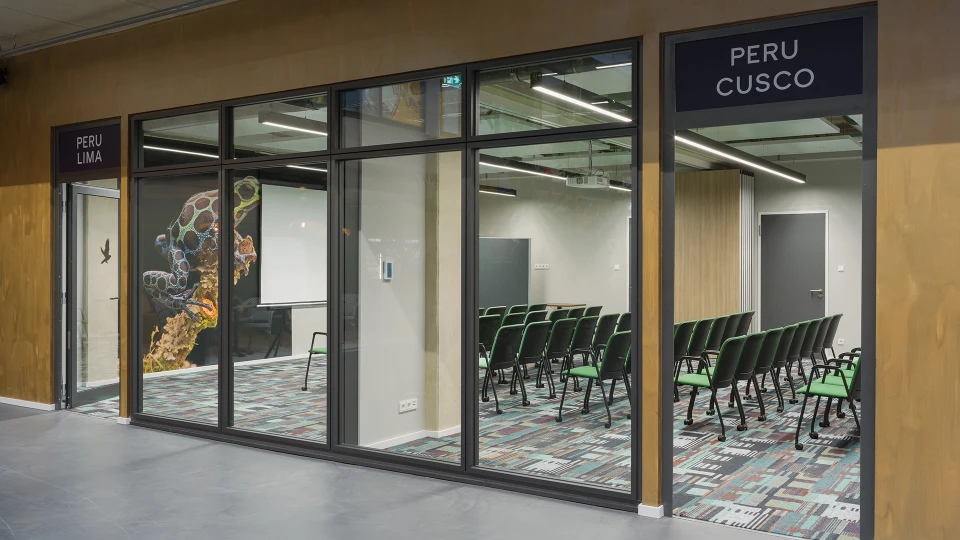 Discover the diversity of Peru in our unique meeting room! The 88m² room can be divided by a mobile partition wall and combines the vibrant city life and the lush nature of Peru. With space for up to 63 people, it inspires with its combination of culture and nature. Be inspired by the Plaza Mayor and the Amazon rainforest - ideal for workshops, meetings and conferences!