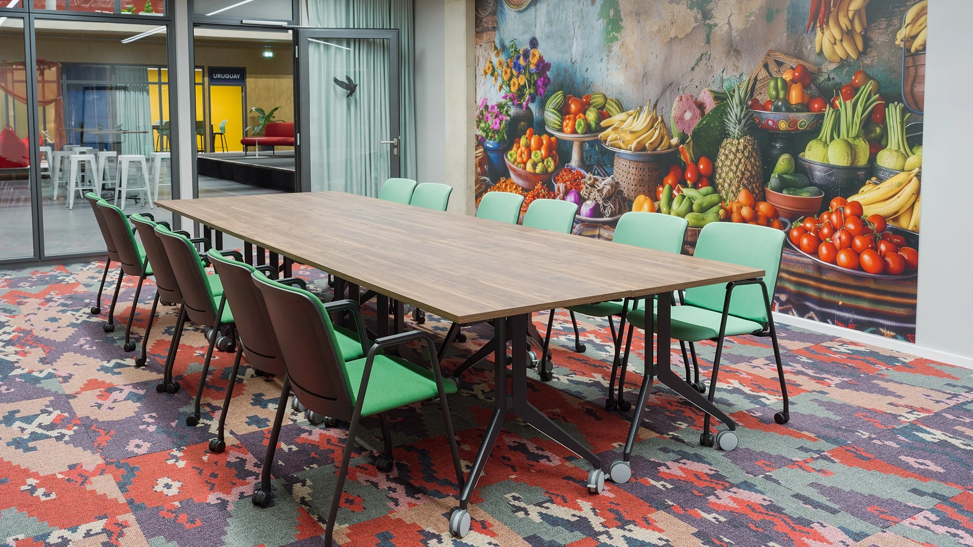 • Weitläufiger, lichtdurchfluteter Coworking- und Eventbereich im smartvillage Köln mit modularem Mobiliar