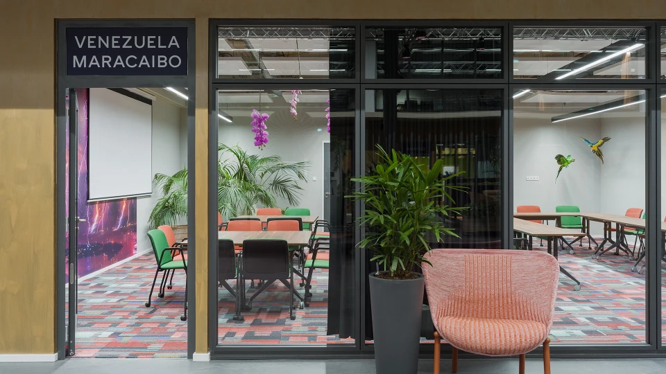 Entdecke den Raum Maracaibo, benannt nach dem spektakulären venezolanischen See, dem gößten Binnenmeer Südamerikas. Tauche ein in eine Atmosphäre elektrischer Kreativität, umgeben von einer faszinierenden Tapete, die das weltberühmte Catatumbo-Gewitter darstellt. Für größere Events lässt sich der Raum durch eine mobile Trennwand mit dem Raum Caracas verbinden – ein wahres Blitzlichtgewitter der Inspiration für Deine Meetings und Workshops!